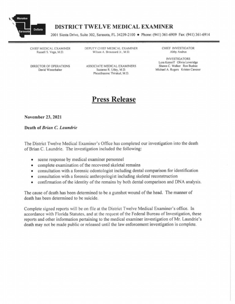 Brian Laundrie Press Release Pdf